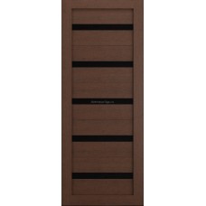 Дверь из экошпона Техно 5 Ясень коричневый (черное стекло)